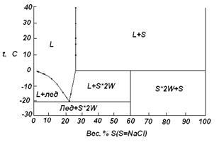 Используя приведенные ниже данные, постройте диаграмму для системы хлористый натрий (S) – вода (W). Примите, что твердые растворы не образуются. Обозначьте все области.