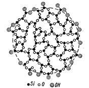 Частицы золя шаровидны, состоят из неправильно упакованных кремнекислородных тетраэдров, поверхностный слой которых заканчивается гидроксилами. Схематически строение такой частицы представлено на рис. 1.1 [4].
