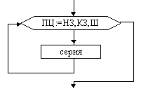 На схемах СЕРИЯ обозначает один или несколько любых операторов; УСЛОВИЕ есть логическое выражение (ЛВ) (если его значение ИСТИНА, переход происходит по ветви ДА, иначе — по НЕТ). На схеме цикла с параметром использованы обозначения: ПЦ — параметр цикла, НЗ — начальное значение параметра цикла, КЗ — конечное значение параметра цикла, Ш — шаг изменения параметра цикла.