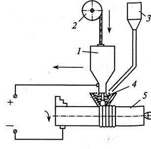 Рис. 2. Схема электродуговой наплавки деталей под флюсом: