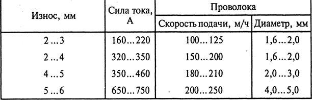 Таблица 5 Основные параметры наплавки плоских поверхностей