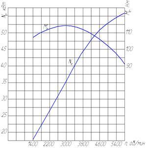 Для этого необходима внешняя скоростная характеристика (ВСХ) двигателя автомобиля, представленная на рисунке 2.1.