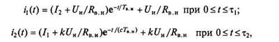 Решая систему уравнений (1.3), можно найти выражения для токов 1Х = / [(с, ух, к, тв); /2 = /2(с, ут, к, тв) и пульсацию силы тока возбуждения А/в = /j - h, где ут = хх/Т - относительная длительность импульса; тв = Т/Твм - относительная длительность периода переключений реле; Т=тх + т2 - период переключений реле. Среднюю силу тока возбуждения определяют путем интегрирования: