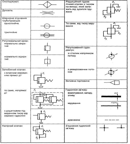 Таблиця 8.Умовні позначення елементів гідроприводу
