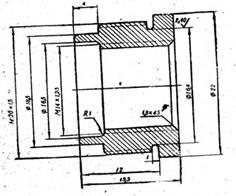 При закреплении цилиндра базируются на нижнюю плоскость фланца цилиндра и наружный диаметр гильзы. Для растачивания на токарном станке цилиндр крепится на специальной планшайбе четырьмя шпильками, как на картере двигателя. Растачивание проводится за один проход, скорость резания не-менее 100