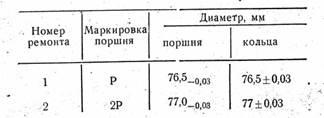 Клеймение группы производится на головке поршня (первый ремонт—Р, второй ремонт—2Р).