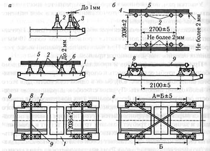 После проверки опорных поверхностей производится установка шпинтонов и их закрепление, после чего рама еще раз подвергается проверке. При этом проверяются следующие параметры, представленные на рис. 2.2: