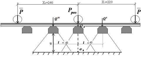 Отже сила тиску рейки на опору по сусідній шпалі становитиме: