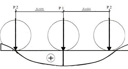 Визначимо максимум завантаження лінії впливу моментів , та максимум завантаження лінії впливу поперечних сил .Отже,