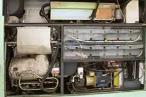 Гибридный тяговый привод[Рис. 4] обеспечивает движение большого городского автобуса по маршруту с минимальными затратами топлива, уровнем шума и выбросами токсичных продуктов. В стандартный комплект электропривода входит асинхронный тяговый электродвигатель.
