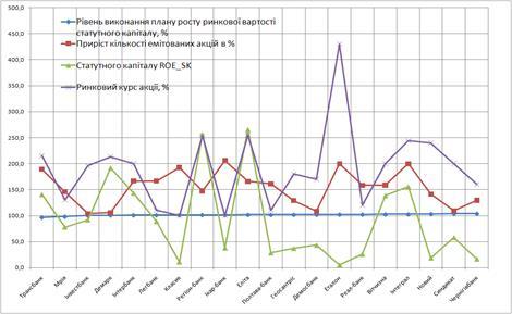 4.2 Аналіз кореляційної залежності між рентабельністю статутного капіталу та ринковим курсом акції банку