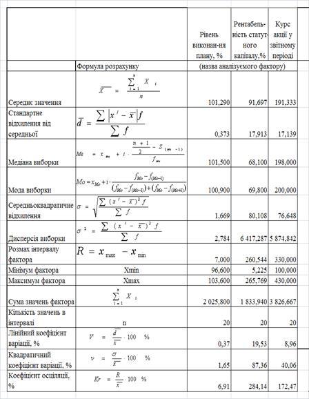 3.3.3 Середнє лінійне відхилення, дисперсія середнє квадратичне відхилення та коефіцієнт варіації рядів ринкового курсу акцій та рентабельності статутного капіталу