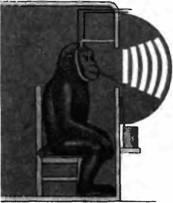 Ориентационные предпочтения кортикальных клеток обезьяны с модифицированным зрительным опытом. Обезьяна содержалась в темной комнате. В возрасте 12 дней был закрыт правый глаз. Когда обезьяна правильно устанавливала свою голову в специальный держатель, она получала апельсиновый сок. При этом она видела своим левым глазом вертикальные полоски (специальный держатель для головы обеспечивал ее ровное положение). На протяжении в общей сложности 57 часов в возрасте между 12 и 54 днями один глаз видел только вертикальные линии, а другой не видел ничего. (А) Когда на экран проецировались горизонтально ориентированные световые стимулы, кортикальные клетки, управляемые как правым, так и левым глазом, отвечали одинаково хорошо. По этой диаграмме нельзя выявить признаков депривации, за исключением отсутствия бинокулярных клеток. (В) При использовании вертикально ориентированных стимулов левый глаз, который постоянно был открытым, управлял корковыми клетками более эффективно, чем правый. Диаграмма соответствует таковой после монокулярной депривации. Результаты позволяют предположить, что конкуренция за горизонтальные стимулы, которые не видел ни один глаз, была одинакова, а для вертикальных стимулов — различна (здесь преимущества имел левый, открытый глаз).