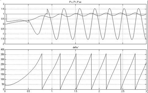 Рисунок 3 – Осциллограммы мощности и угла , при отклонении угла больше