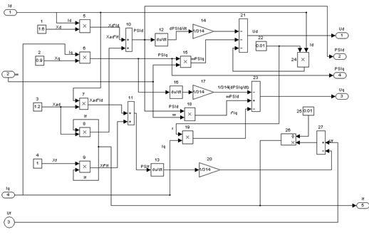 Компьютерная модель СГ в координатах d, q, 0 была получена путем реализации системы уравнений (2), (3), (4).