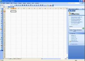 Таблицы в программе Excel создаются на рабочем листе. Рабочий лист разделен на строки и столбцы, которые, пересекаясь, образуют ячейки. В ячейки вводится содержимое таблицы. Рабочий лист состоит из 256 столбцов (от А до IV) и 65 536 строк. По умолчанию строки нумеруются, а столбцы обозначаются одной или двумя латинскими буквами.