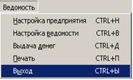 Запустить экранные формы можно с помощью команд меню «Ведомость» (рисунок 1).
