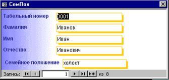 В результате запроса открывается форма «Фамилия» (см.рис.1.18.)