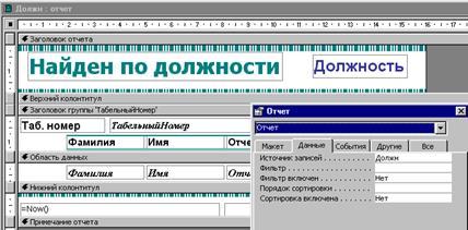 Отчет «Списки по должностям» создан в режиме конструктора (см. рис.1.24)