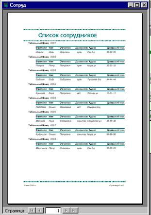 рис.1.27 Экранная форма отчета «Список сотрудников»