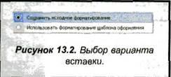 Для того щоб, зберегти параметри форматування заголовку повністю, потрібно клацнути по піктограмі "Параметри вставки", яка відобразиться під заголовком. З’явиться меню (мал.13.2), в якому встановити флаг "Сохранить исходное форматирование". Заголовок буде вставлений із збереженням всіх настройок форматування.