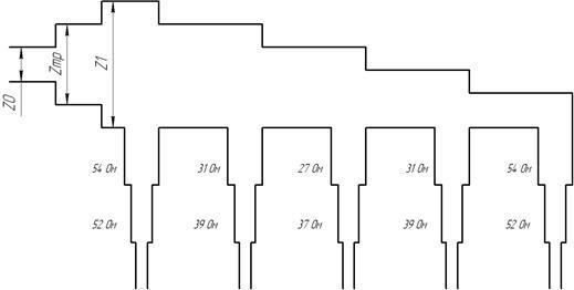 Вычислим ширину остальных линий и их сопротивления в соответствии с коэффициентами деления.