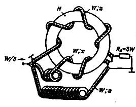 В ходе дальнейших исследований был предложен и развит принцип построения трансформаторов, в качестве обмоток которых стали использовать проводники однородных двухпроводных линий, соединенных с одной их общей стороны параллельно, а с другой — последовательно и согласованных с нагрузкой [10]. Это дало возможность улучшить характеристики устройств па верхних частотах.