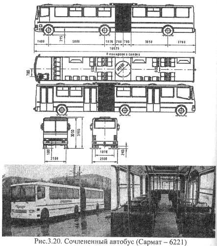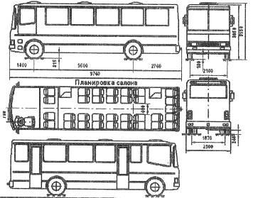 Рис 3.18. Планировка салона и общий вид автобуса местного сообщения (Сармат-4225)