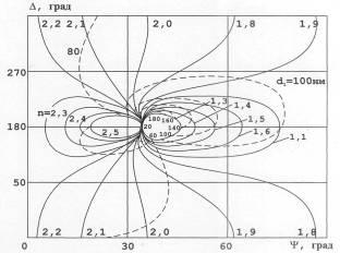 и определяют показатель преломления . Результатами расчета являются номограммы (рис. 12), на которых представлены зависимости A