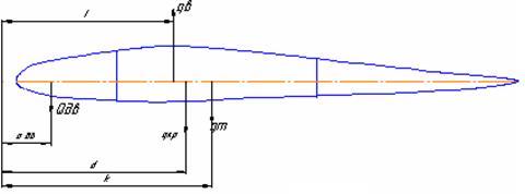-задний лонжерон на расстоянии 75% хорды от носка крыла (рис. 5).