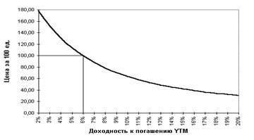 Рис. 1. Зависимость YTM от цены P