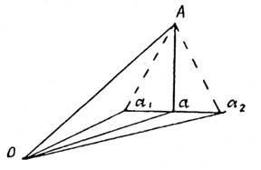 При выполнении этого условия при отвесном положении вертикальной оси теодолита, установленном по уровню при алидаде горизонтального круга, визирная ось трубы при вращении образует отвесное положение коллимационной плоскости (на рис. 3.плоскость 0Аа). Если условие не выполняется, то при вращении трубы визирная ось образует наклонную плоскость 0Аα1
