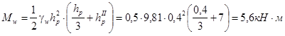 Размеры сечения шпунта находят по изгибающим моментам, определяемым из рассмотрения равновесия верхних отсекаемых частей стены. Наиболее опасное сечение находится на глубине h0