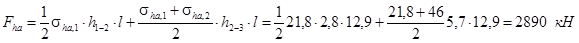 , ниже дна котлована. Из условия равенства суммы горизонтальных сил, приложенных к шпунту выше искомого сечения, можем приближенно записать: