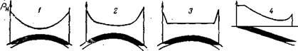 . Однако очень часто градиент нарастания плотности и ее абсолютные значения резко возрастаютв непосредственной близости к водонефтяному контакту (ВНК, рис. 1,1, 2), где могут встречаться полутвердые асфальты и твердые битумы. Иногда эти малоподвижные нефтяные вещества образуют монолитный слой в подошве залежи, который полностью или частично запечатывает залежь, изолируя ее от законтурной водоносной зоны. Нередко плотность нефти выше изолирующего слоя практически постоянна (рис. 1,3). В залежах «открытого» типа, приуроченных к пластам, выходящим на дневную поверхность, и запечатанных с головыасфальто-кировыми породами, плотность нефти с увеличением глубины уменьшается, достигает минимума, а затем увеличивается по мере приближения к ВНК (рис. 1,4).