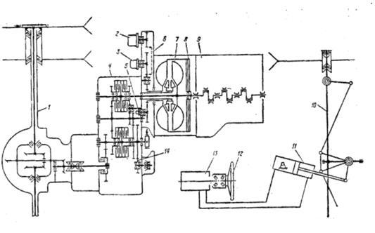Рисунок 1.7 – Кинематическая схема малогабаритных автопогрузчиков с гидромеханической трансмиссией