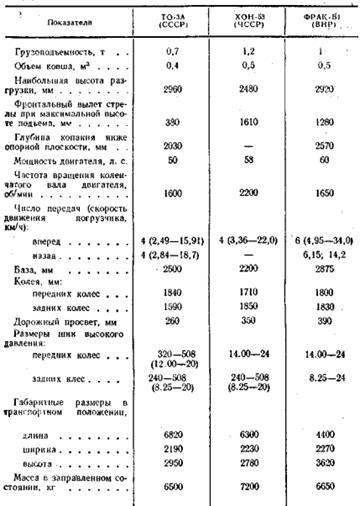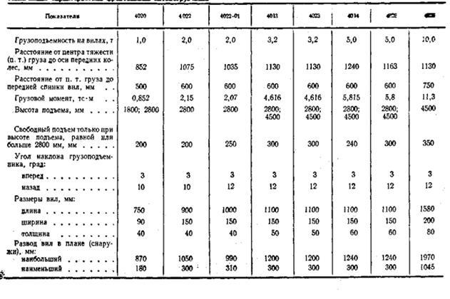 Таблица 1.1 - Техническая характеристика фронтальных автопогрузчиков