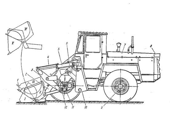 По способу бокового захвата различают погрузчики с парными нагребающими лапами 7 (рисунок 2, ж) или рифлеными дисками. 11 (рисунок 2, з). Погрузчики с тем или другим рабочим органом в принципе могут иметь одинаковое самоходное шасси на гусеничном или колесном ходу.