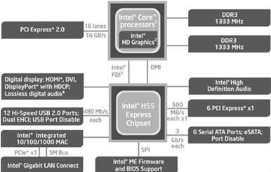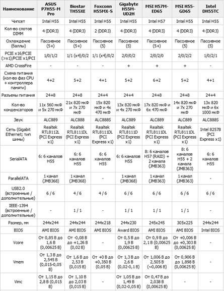 · поддержка всех процессоров с сокетом Socket 1156 (включая соответствующие семейства Core i7, Core i5, Core i3 и Pentium), основанных на микроархитектуре Nehalem, при подключении к этим процессорам по шине DMI (с пропускной способностью ~2 ГБ/с);