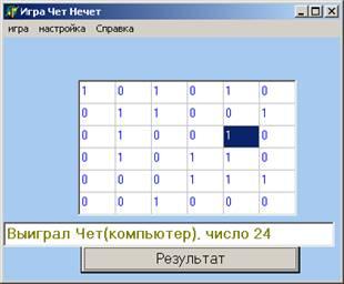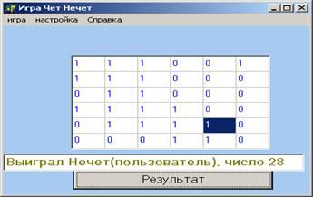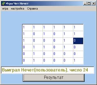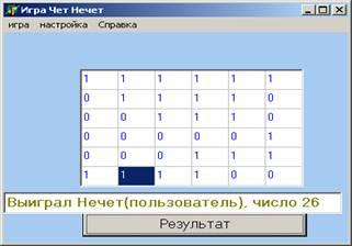 Программа, моделирующая игру «Нечет» и «Чет» разработана на языке ObjectPascal в визуальной среде Delphi 6. Проект содержит одно окно-Form1.