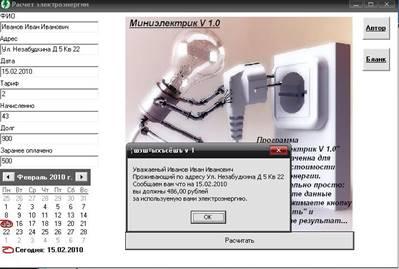 Информация (ФИО, адрес, дата, тариф, начислено, долг, заранее оплачено) должна вводиться пользователем. Программа должна корректно воспринимать данные, а также обрабатывать их с целью получения полной информации о предстоящем платеже за электроэнергию с учетом как тарифа и текущих начислений, так и с учетом долга и заранее погашенных платежей.