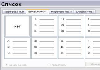 Рисунок 2 Во вкладке Список» в ней можно выбрать уже «нумерованный список».