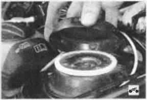 3. Знімаємо кришки верхніх опор телескопічних стійок і робимо поверхневий огляд верхніх опор. У разі сильної деформації потрібно її замінити.