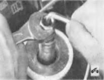 4. Втримуючи одним ключом шток амортизатора від прокручування іншим ключем ослаблюємо затяжку гайки (Додаток 4, мал.2);
