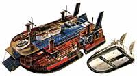 Общий вид (при снятой наружной обшивке) судна на воздушной подушке типа 5К4. В правом нижнем углу — вид на судно снизу в уменьшенном масштабе