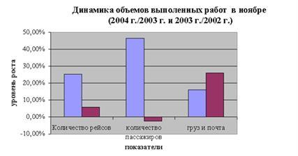 Отмечается положительная динамика коммерческой загрузки воздушных судов авиакомпании. По сравнению с ноябрем 2004 года на 1,1% увеличился процент занятости пассажирских кресел, на 0,7% увеличился процент коммерческой загрузки.