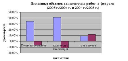 Отмечается положительная динамика коммерческой загрузки воздушных судов авиакомпании. По сравнению с февралем 2005 года на 6,6% увеличился процент занятости пассажирских кресел, на 4,3% увеличился процент коммерческой загрузки.