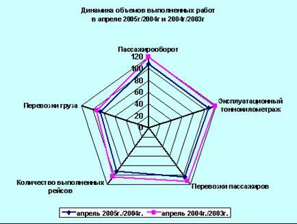 Отмечается положительная динамика коммерческой загрузки воздушных судов авиакомпании. По сравнению с апрелем 2005 года на 5,3% увеличился процент занятости пассажирских кресел, на 2,6% увеличился процент коммерческой загрузки.