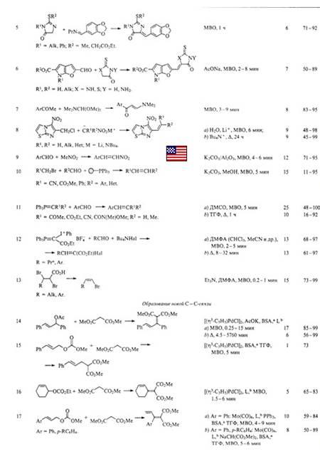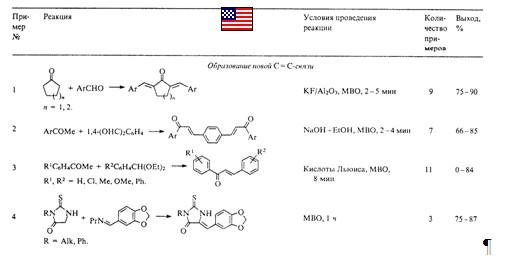 Таблица 2. Образование новых С=С- и С–С-связей в условиях микроволнового облучения.
