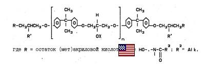 Строение основного компонента, полученного этерификацией эпоксиолигомеров акриловой кислотой, авторы выражают следующей формулой: